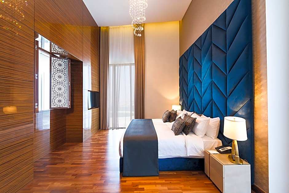 Royal Penthouse The beautifully designed penthouse with bespoke furnishings and double height ceiling offers 184 square yards of luxury. It has two bedrooms, including a master bedroom. Enjoy the latest technology and state of the art appliance fitted throughout the penthouse. The penthouses also include: •Early check in & late check out complimentary upon availability. •In-suite check in. •Complimentary drop and pick up at City center and Seef mall if required.